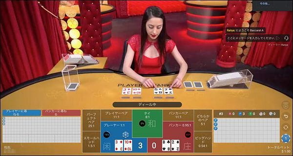 ちなみにビデオバカラもありますが、ライブバカラは美女が多いので目の保養的にもおすすめです(笑)