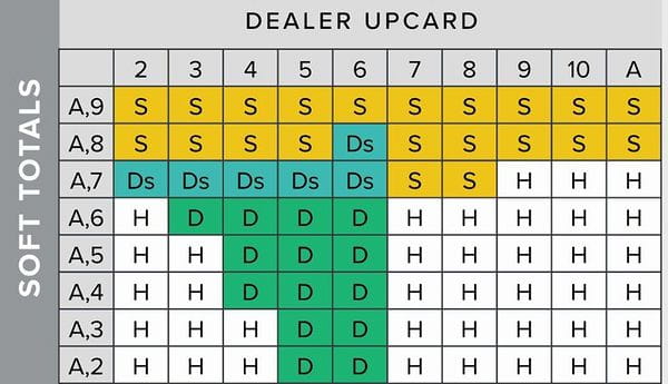 ベーシックストラテジーとは、プレイヤーのカードの合計値とアップカードからどのアクションを選択することで、最も勝率を高めることができるのかを表にしたものです。